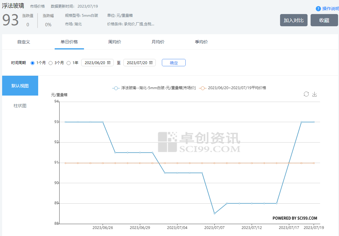 四、浮法玻璃近一月價格曲線